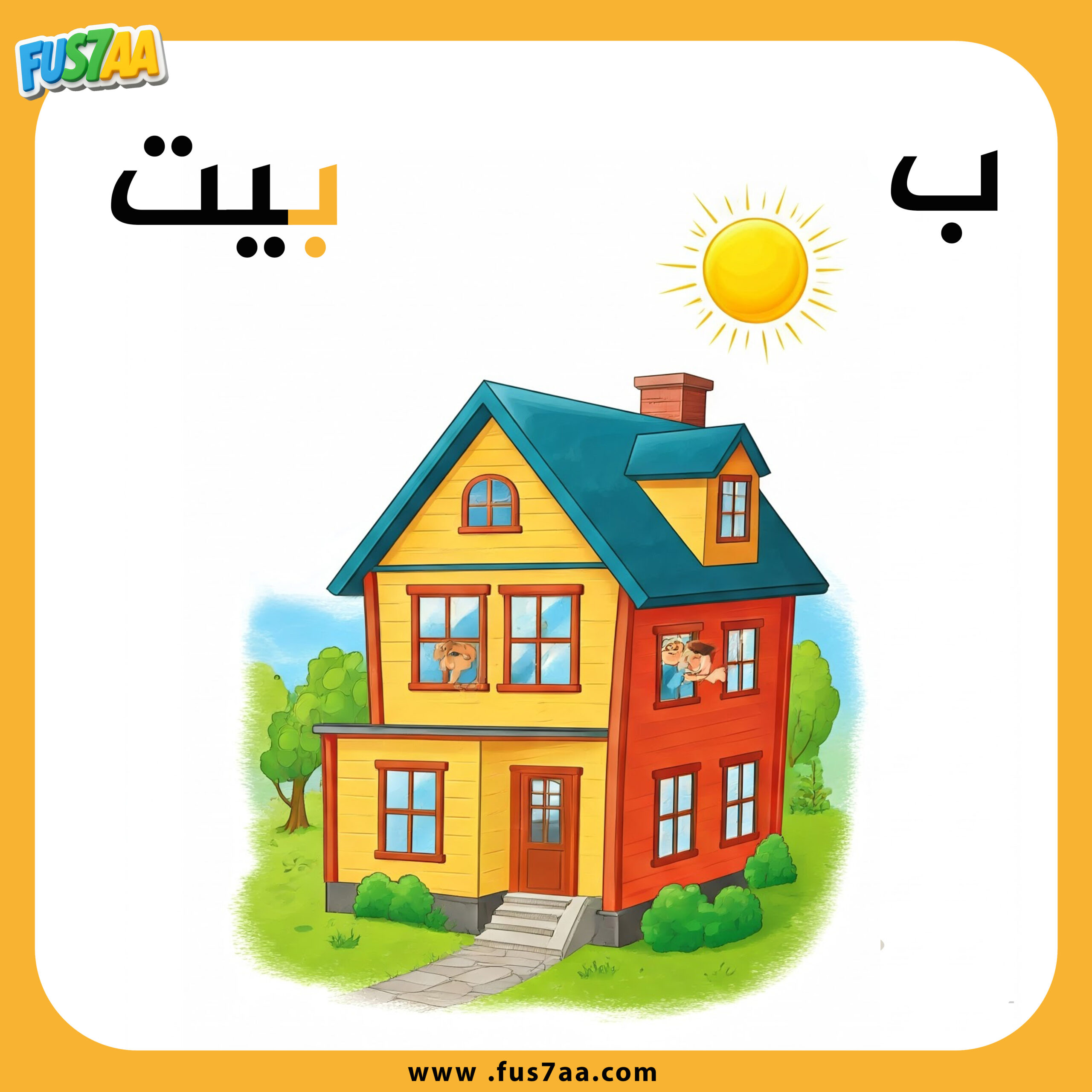 يأتي حرف الباء في بداية كلمات كثيرة يحبها الأطفال مثل: بطة، باب، بستان.